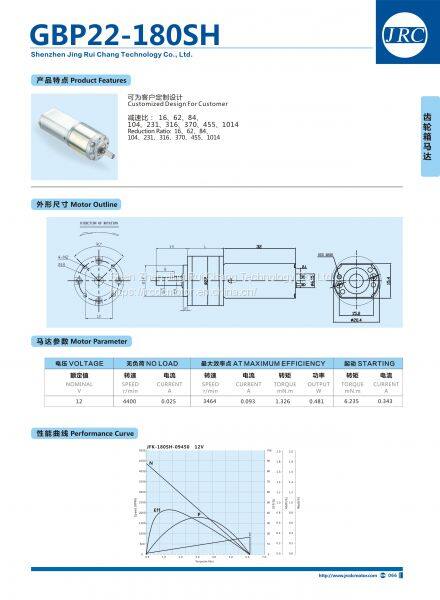 Главная > Продукты > Планетарный редуктор-мотор > GBP22-180SH-09450 Редукторный электродвигатель, JRC постоянный токовый электродвигатель, Коэффициент передачи: 16/62/84/104/231/316/370/455/1014, постоянный ток 12 В, 4400 об/мин
