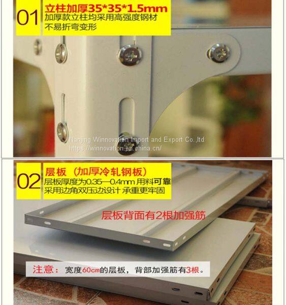 Рельсовая угловая стальная полка доступна в многих цветах, например черный, серый, синий, красный и т.д. Размеры и количество ярусов могут быть заказаны по индивидуальному проекту и регулироваться. Она легко монтируется, делает ваш апартамент или склад уютным, чистым и модным.