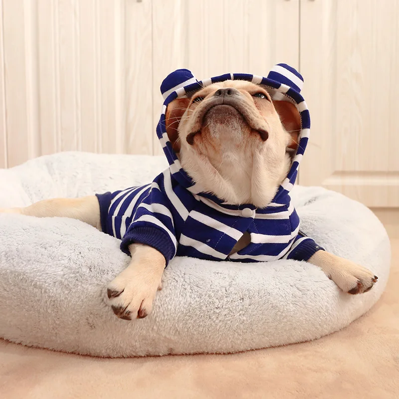 Главная > Продукты > Одежда для домашних животных > Полосатый футболка-худи для домашних собак и щенков, одежда для корги-булли, одежда для домашних собак с маленькими ушами