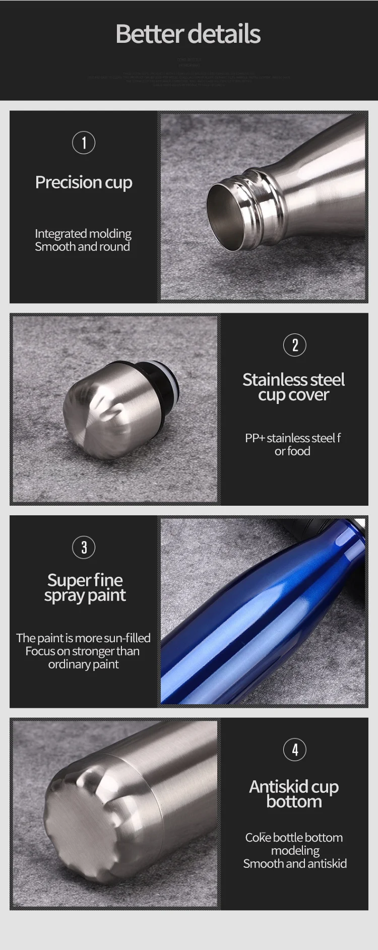 500 мл двойная стенная нержавеющая стальная термосфляга спортивного типа в форме колы