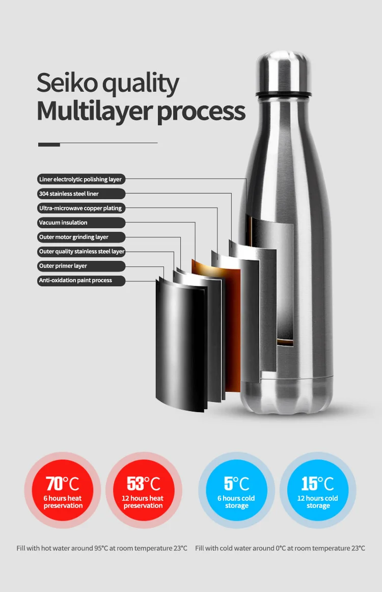 Оптовая продажа 500 мл термоса из нержавеющей стали с двойной стенкой для горячей и холодной воды