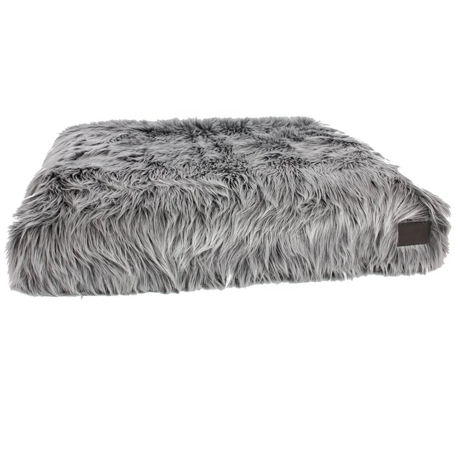 Коврик для собак с внутренним наполнением из рваного память-пух и съемным матовым наружным слоем.