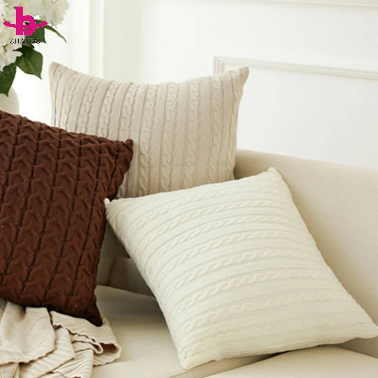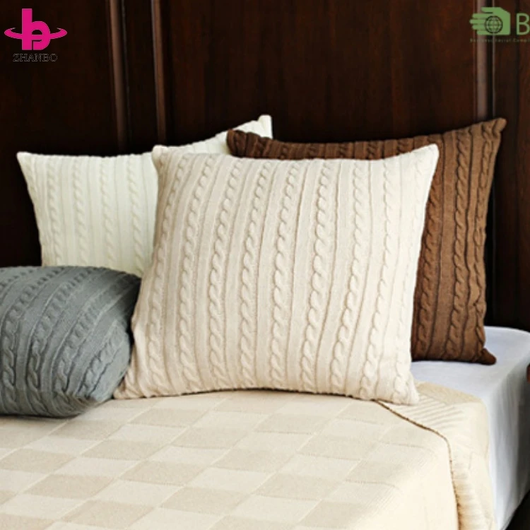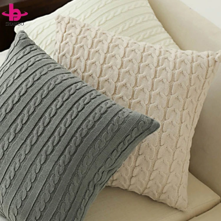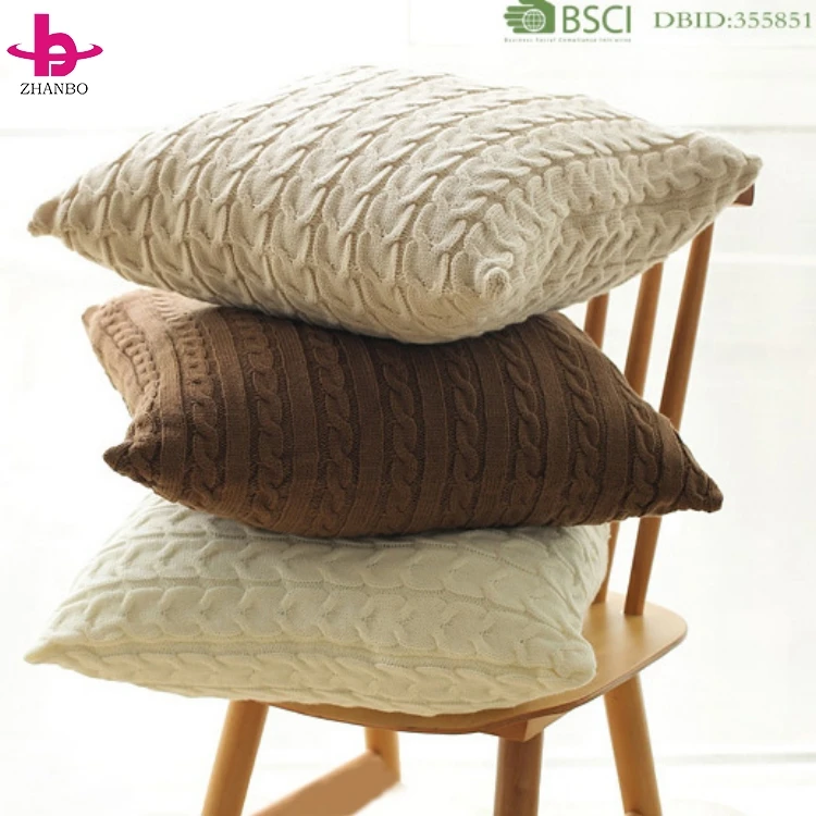 Китайский поставщик оптовых продаж чехлов для подушек из полотна, выполненных в различных цветах, 100% хлопок/акрил, однотонные, с вязанными узорами в стиле ?кабель?