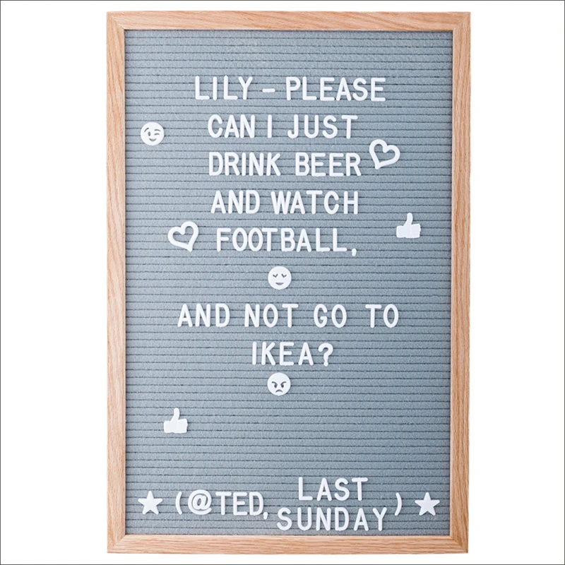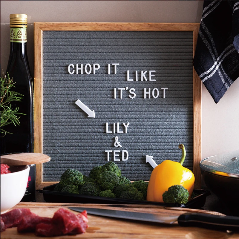 Стильная доска с буквами из войлока в деревенском стиле с ореховой рамкой