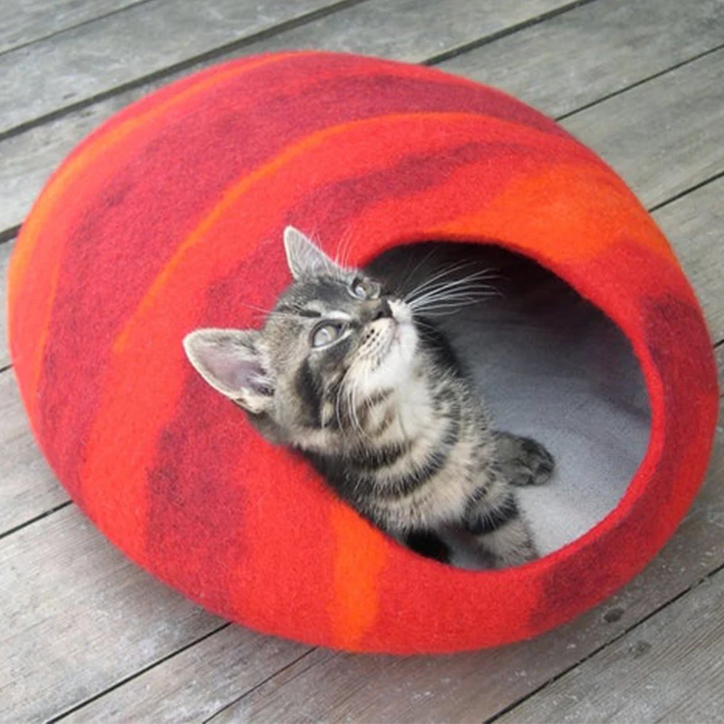 Персонализируемая съемная кошачья гнездовая дупла из натурального вязаного войлока, сделанная вручную