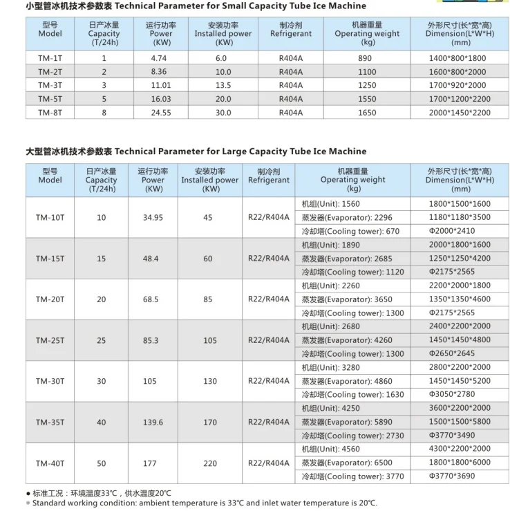 ?22, ?29, ?32, ?35, ?41 стандартный внешний диаметр трубчатого льда для выбора. Возможно изготовление по индивидуальному заказу.