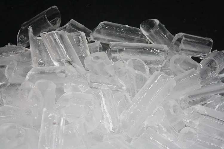 Лёд твёрдый, без пыли, прозрачный, санитарный и имеет полую форму.