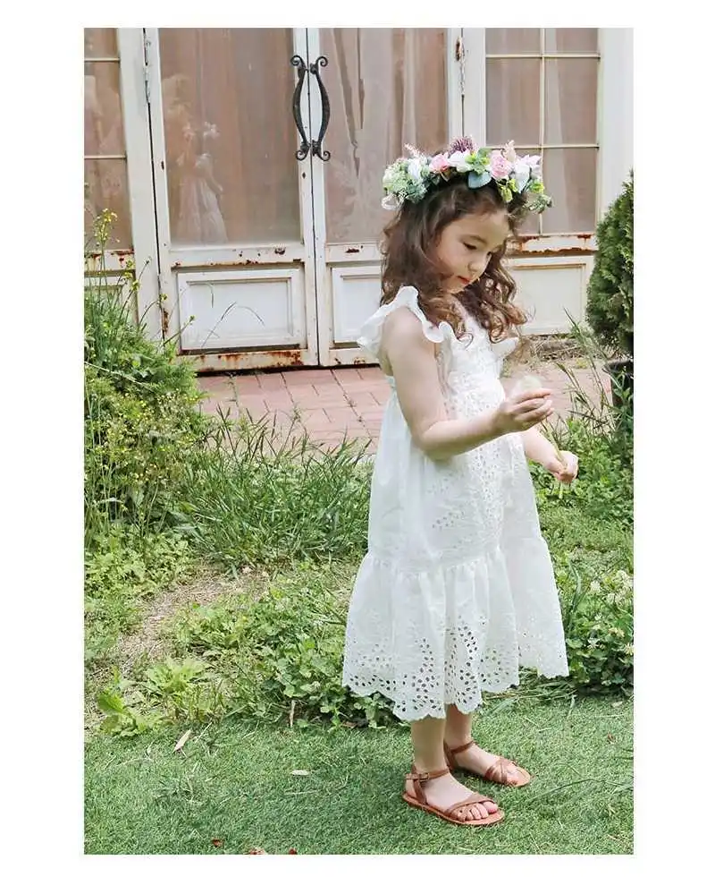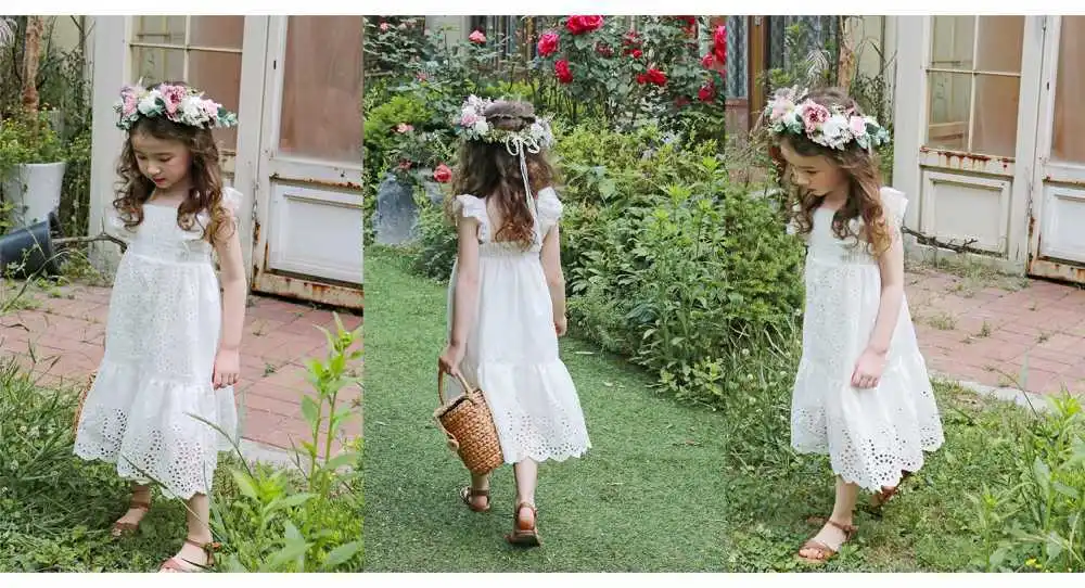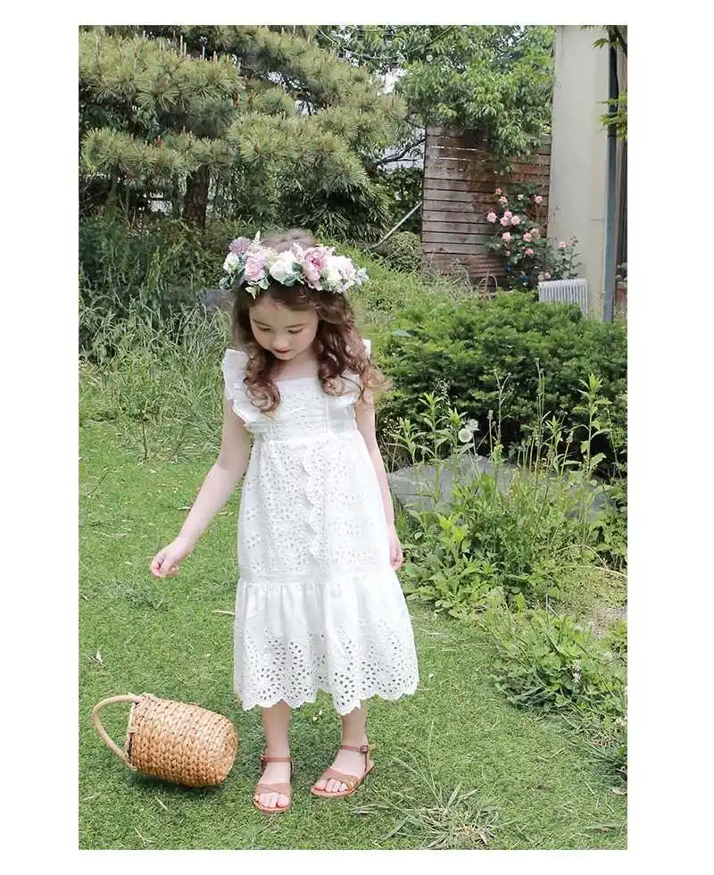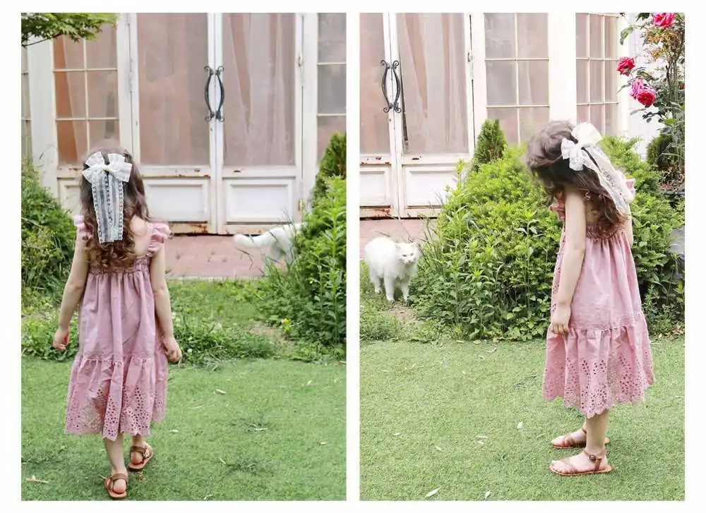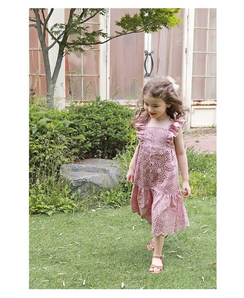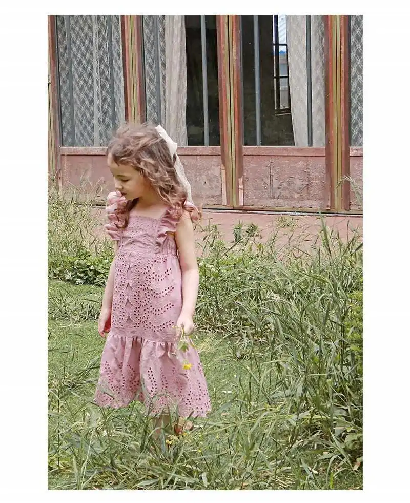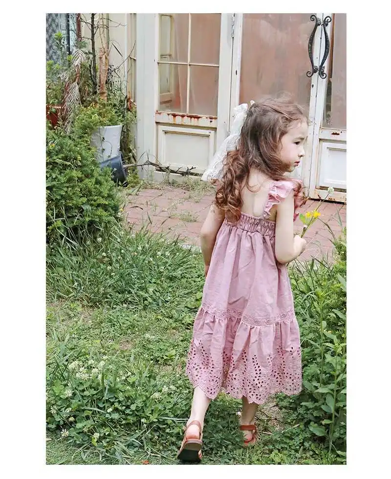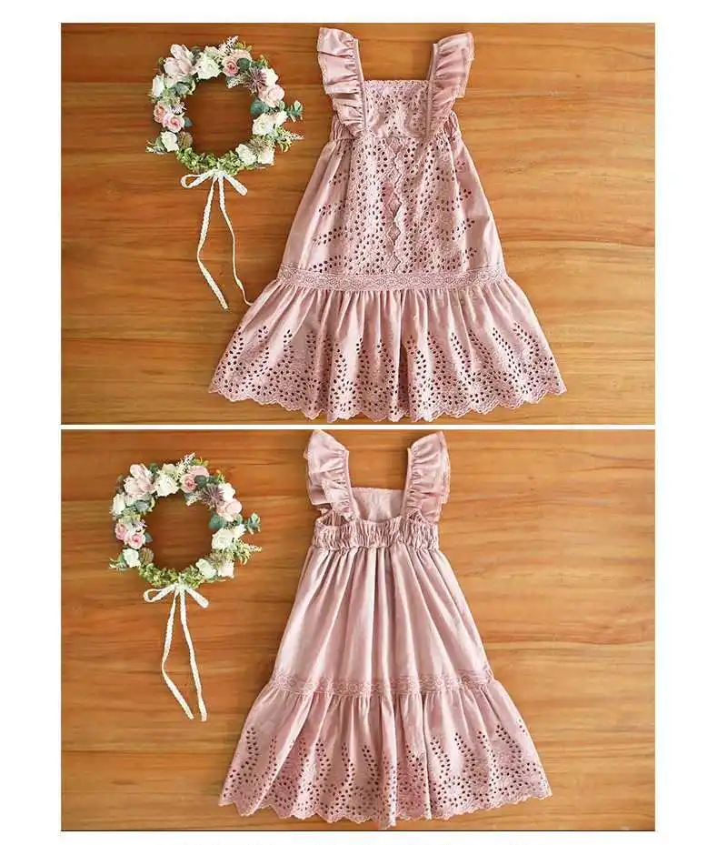 Детская платье 2020 летнего сезона из хлопка с рукавами и вырезом на спине