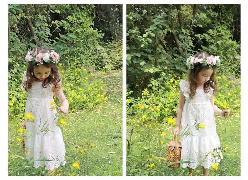 Летнее платье из хлопка и льна с кружевом в конфетных цветах для девочек 2020 года