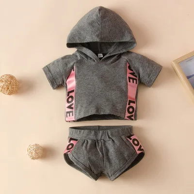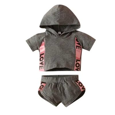 Главная > Продукты > Набор детской одежды > Двухкомпонентный повседневный капюшонный костюм для детей с надписью