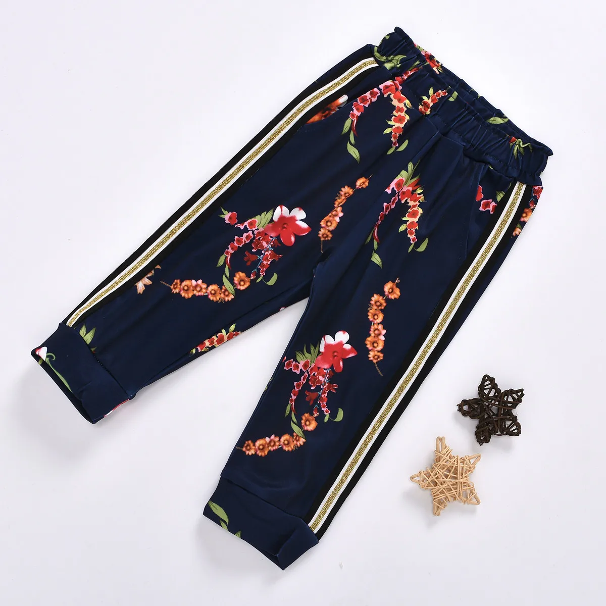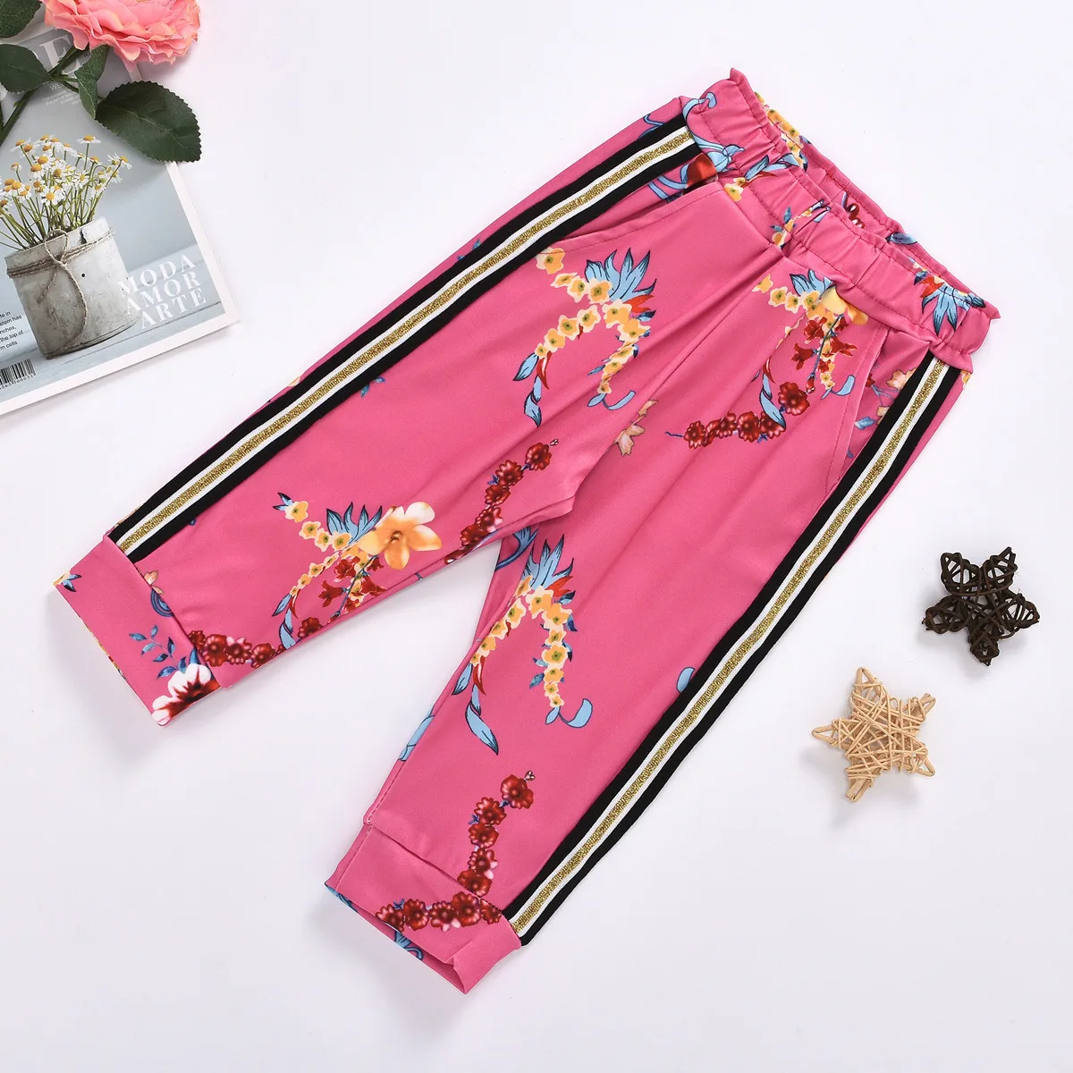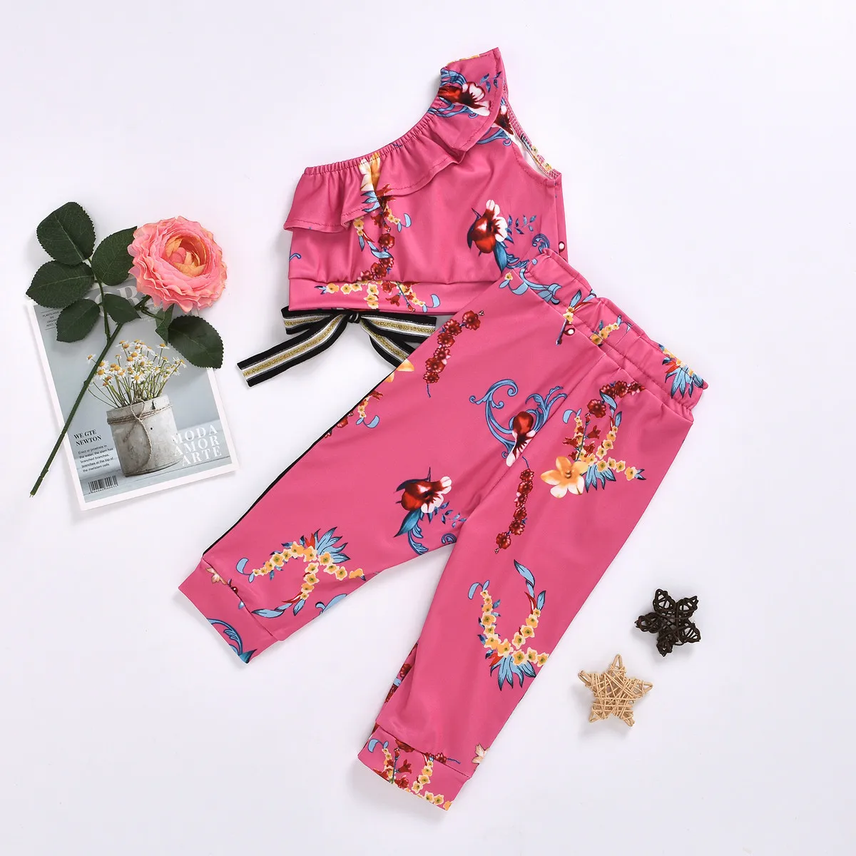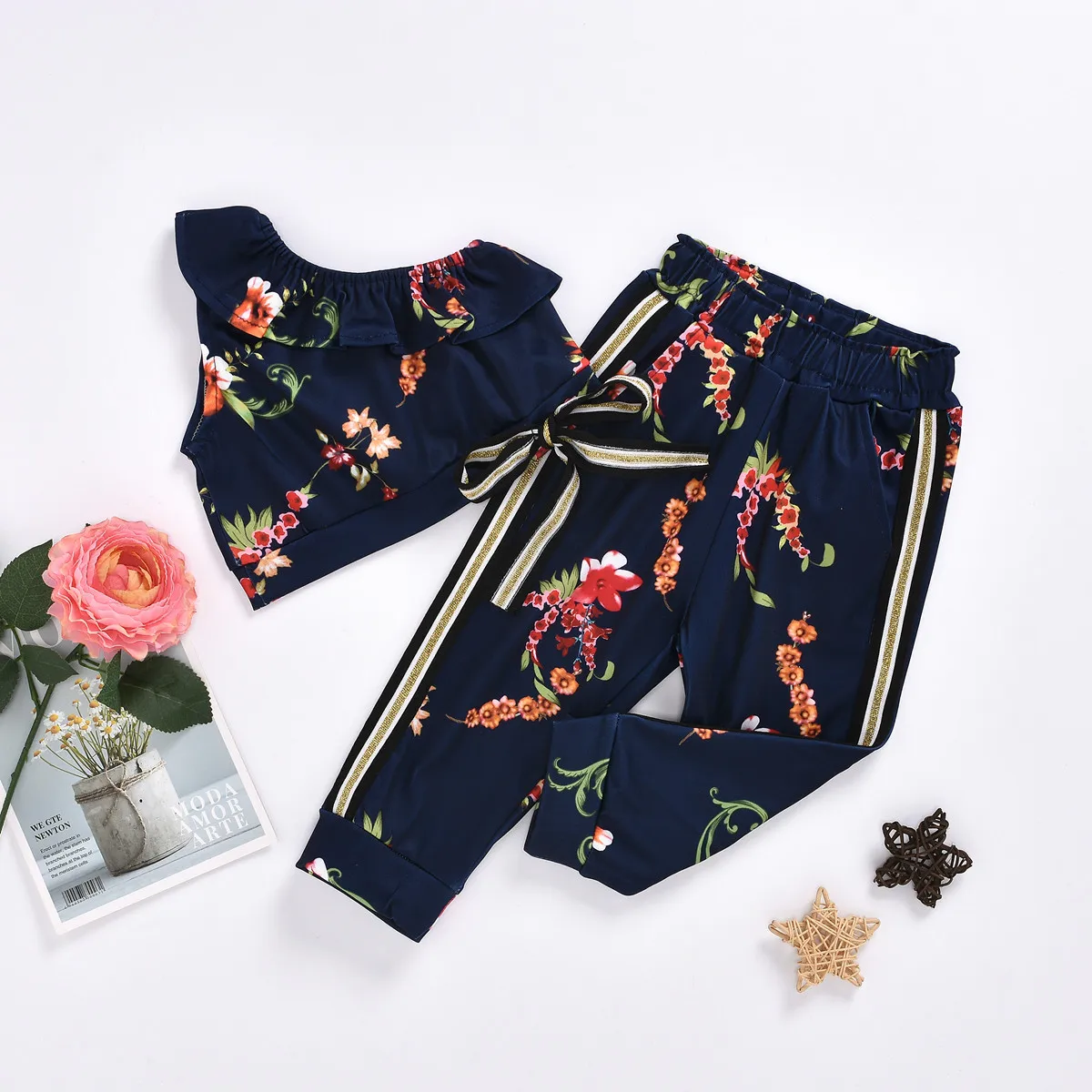 Летние костюмы для девочек - набор из 2 штук: блузка для младенцев + брюки. Детская одежда, с цветочным узором, складками, эластичными вставками, пушистыми рукавами