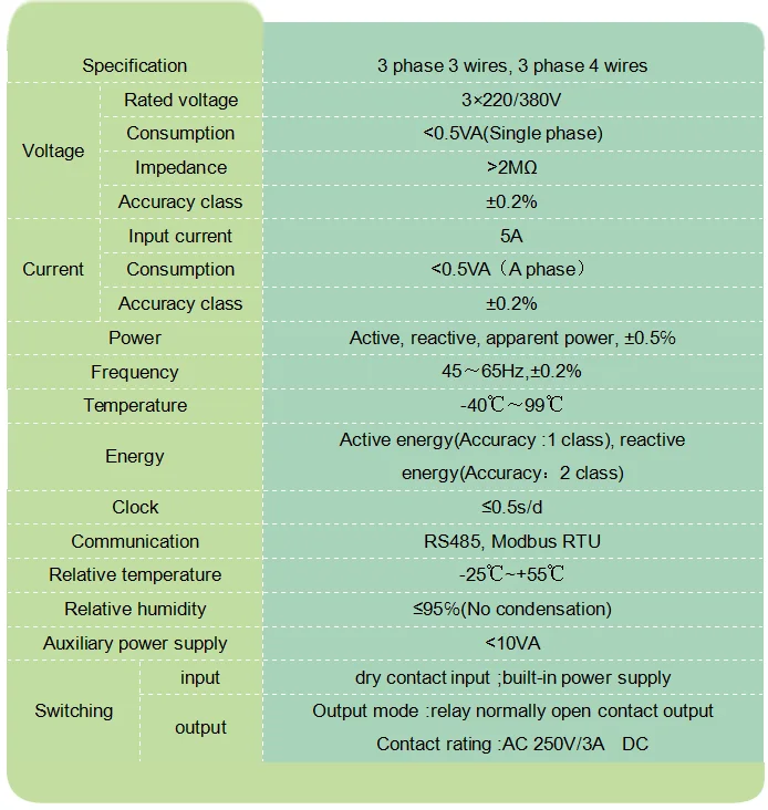 | Класс точности | 1.0 класс | Диапазон измерения энергии | 000000.00~999999.99кВт.ч |