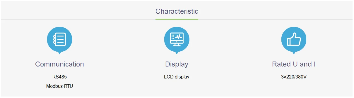 7. 200 записей событий, регистрация действия DI/DI, поддержка таких сигнализаций, как перегрузка напряжения, перегрузка тока, обрыв фазы, связь DI и другие сигналы тревоги;