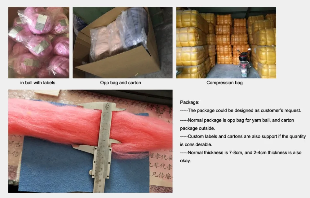 Назначение | 100%-ная пряжа из мериносного шерсти для шарфов/свитеров/шляп/пледей и т.д. | Обычная упаковка представляет собой пакет из ПЭТ для клубка пряжи и коробку снаружи | ||||||
