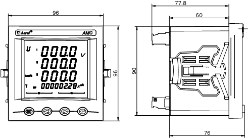 AMC72-E/KC AMC72L-E/KC | однофазное напряжение.однофазный ток активная мощность, реактивная мощность, полная мощность Коэффициент мощности Частота Четырехквадрантная измерение энергии, Отображение системного времени 1 канал интерфейса RS485 / Протокол Modbus-RTU и стандарт DLT645. | ①2DI+2DO+1Ep(K) ②4DI+2DO(K) ? |