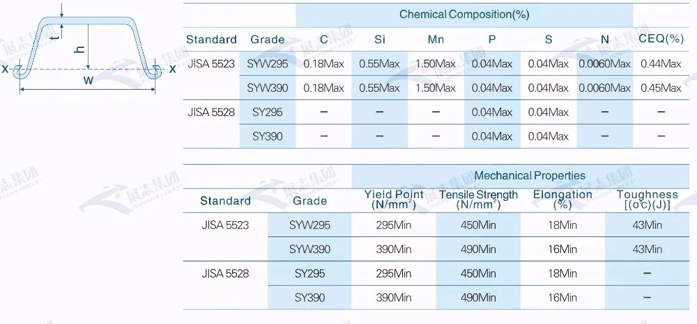 Химический состав U-образных листовых свай