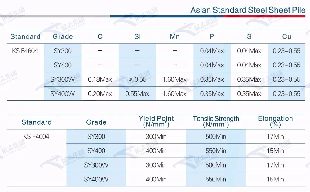 U-образные листовые сваи по стандарту KS