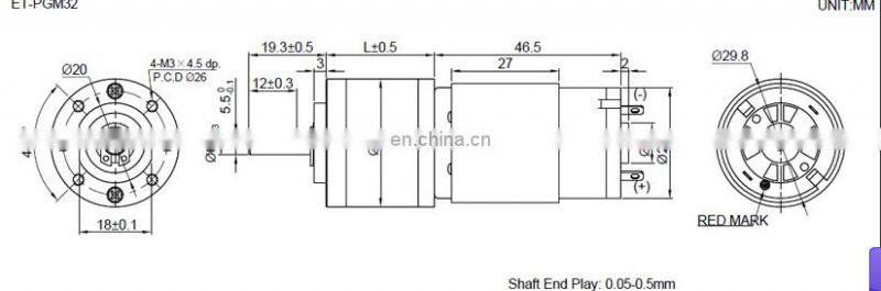 ET-PGM45 12V 45мм мини DC-планетарный зубчатый электродвигатель