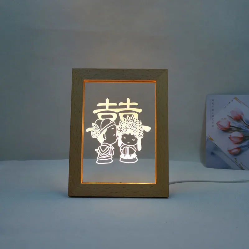 Yuefeng Одноцветный акриловый USB 3D креативный деревянный фоторамочный ночник - подарок на свадьбу