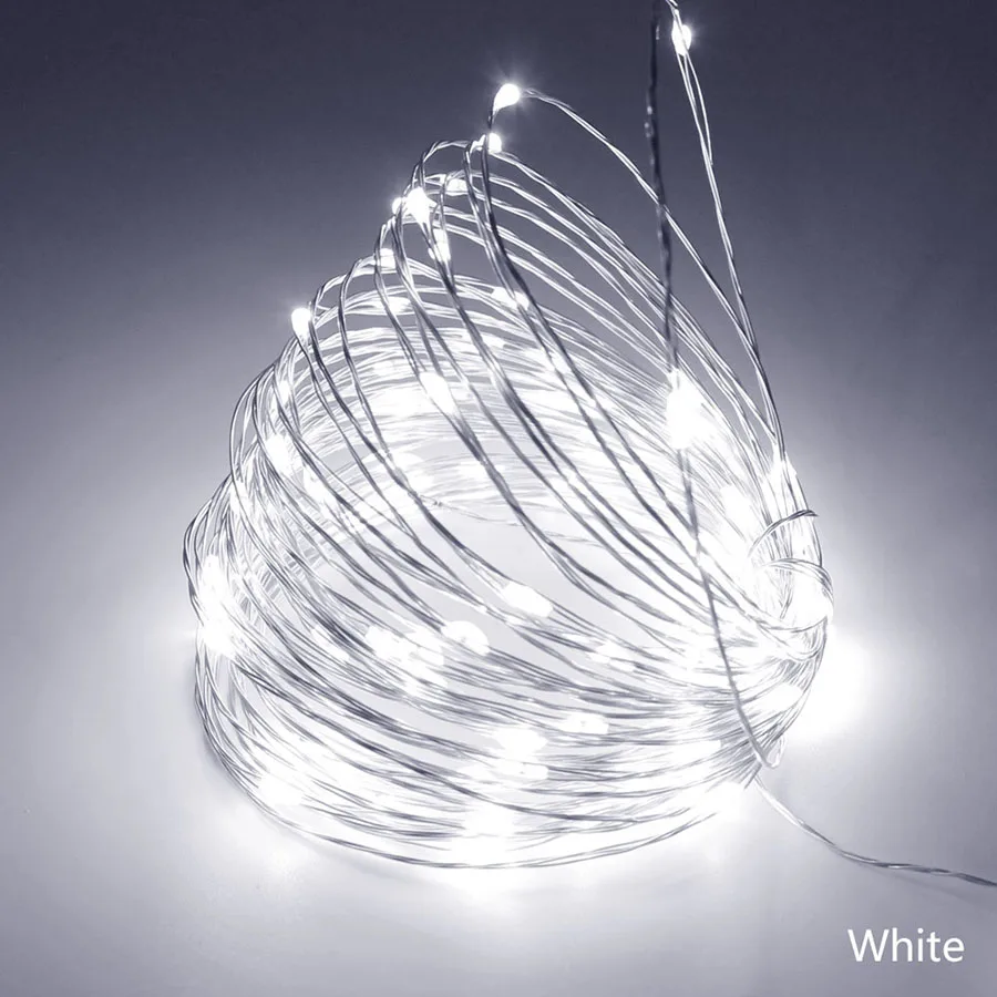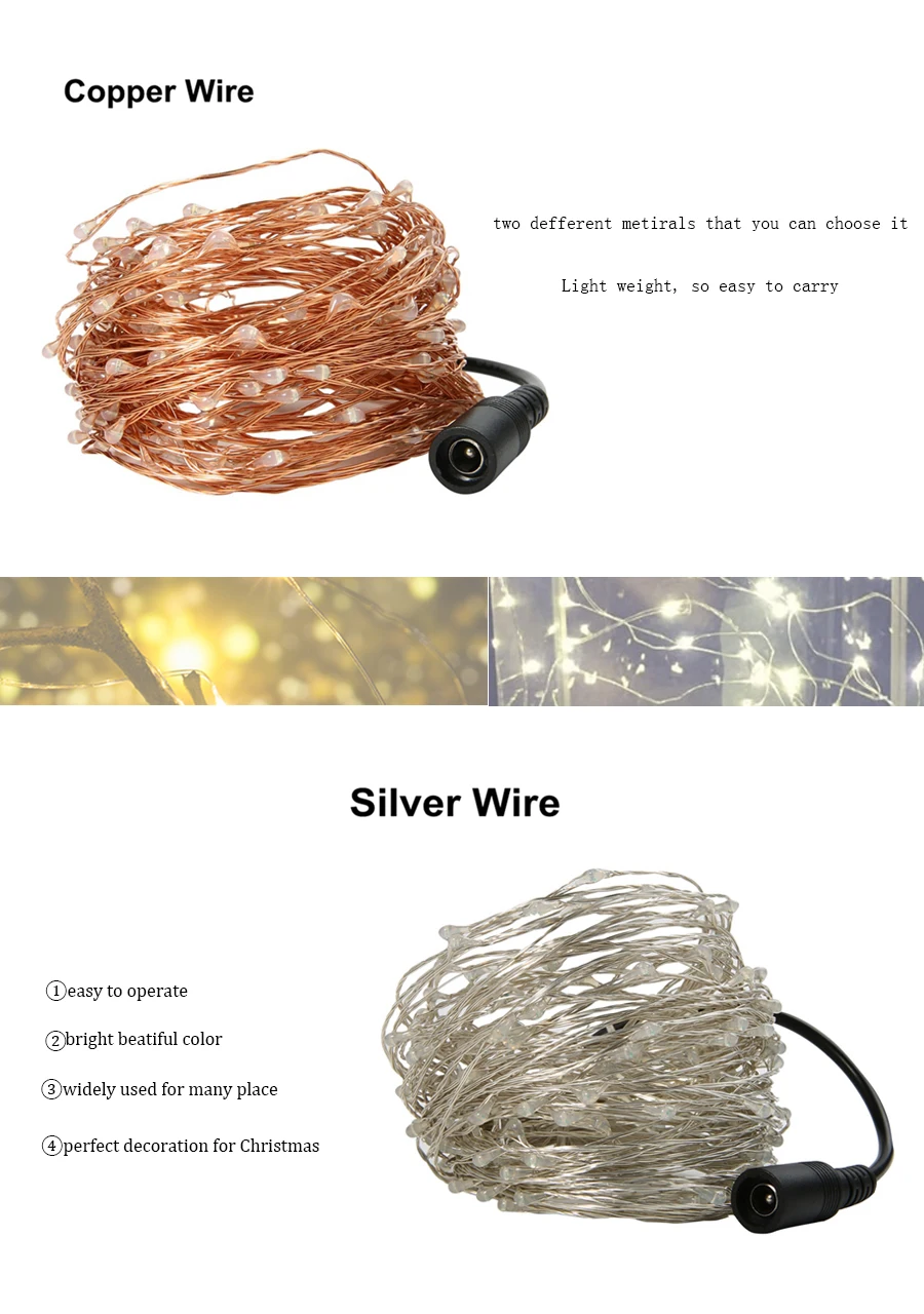 10 м светильник на ленте LED с источником питания с DC-разъемом, гирлянда из медного и серебряного провода, новогодние феерические лампочки для украшения