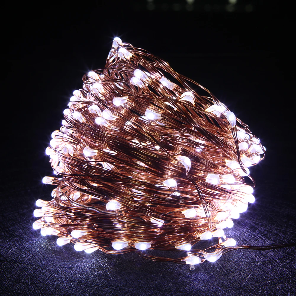 Влагозащищенные наружные рождественские феерические лампочки 10м 20м 30м 50м на медной проволоке, светодиодные гирлянды с адаптером