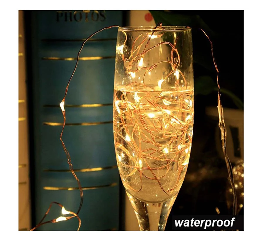 Рождественские огни 2M с 20 светодиодами, водонепроницаемые медные миниатюрные феерические ленты освещения, теплосветлые белые, декоративные лампы для дома и свадьбы, батареи CR2032