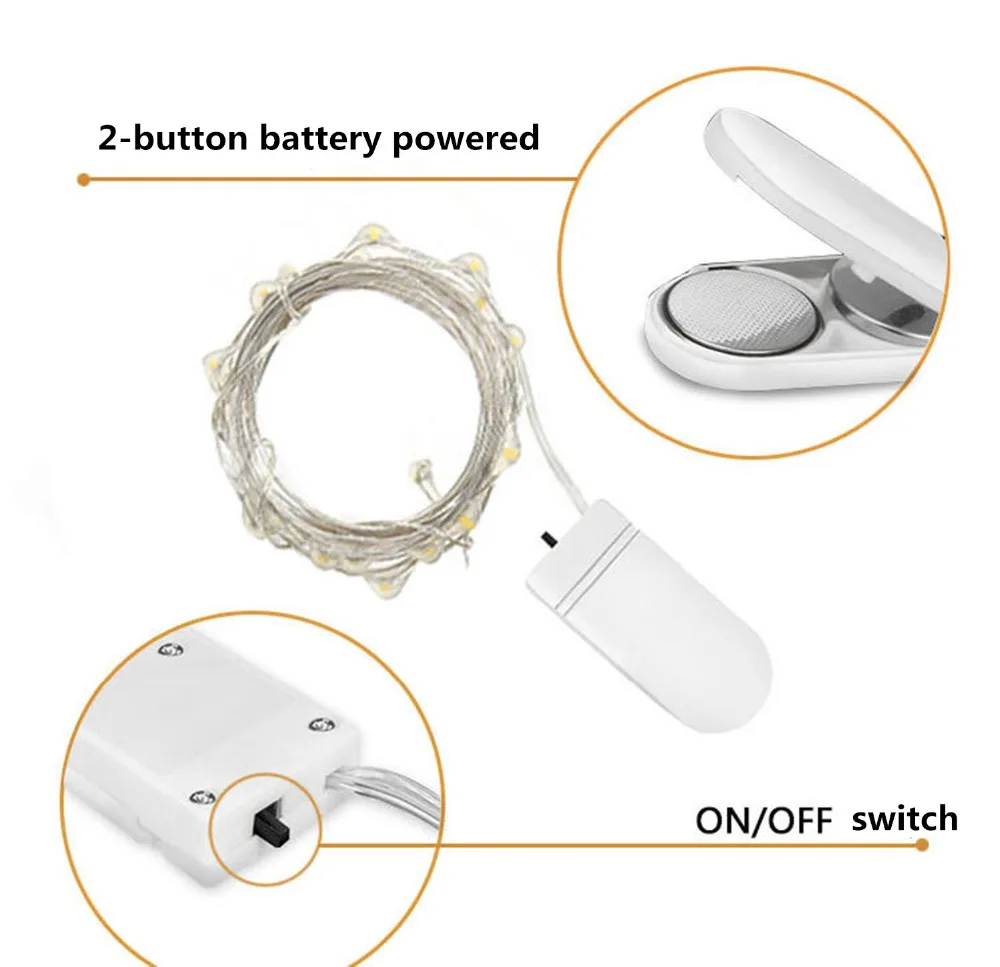 Главная > Продукты > Декоративные светодиодные лампы > Мигание, 2М, 20 светодиодов, гирлянда, феерические лампочки, водонепроницаемая, серебряная проволока, украшение для Рождества, Хэллоуина