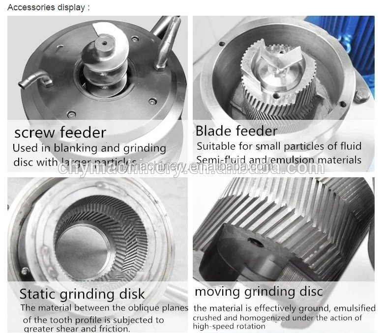 Все детали, контактирующие с продуктом, изготовлены из пищевой нержавеющей стали. Особенно как динамический, так и статический жернова укреплены, что обеспечивает им лучшие свойства коррозионной и износостойкости. В этом случае готовые материалы не загрязнены и безопасны.