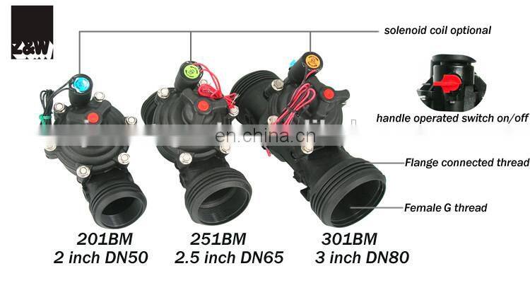 201BM 2-дюймовой пластиковый электромагнитный клапан с дистанционным управлением для орошения, 2-дюймовый, для сельского хозяйства и ландшафтного дизайна, с женским фланцем BSP, диаметр проходного сечения DN250, на переменный и постоянный ток