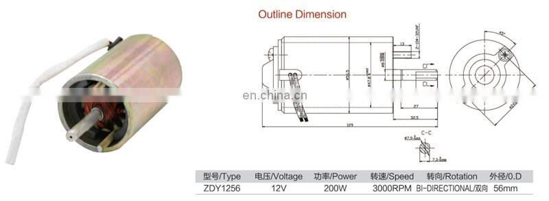 Модель ZDY1256 представляет собой постоянный двигатель с угольными щетками на 12 В, 200 Вт. ZDY1256 имеет низкий крутящий момент: 1 Н·м, это миниатюрный постоянный двигатель.