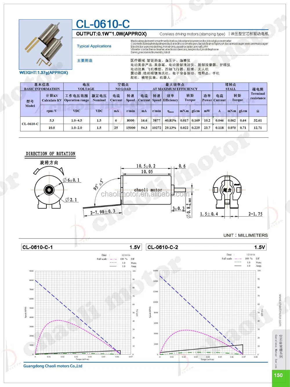 Главная > Продукты > Классификация по размеру > 6 мм 1,5 В мини-электрический двигатель постоянного тока CL-0610-C для прибора измерения артериального давления и глюкометра