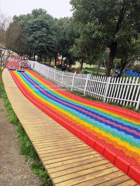 Радужный сухой снежный горнолыжный каток становится очень популярным в последние годы. Это новая сухая горнолыжная трасса или искусственная горнолыжная трасса, которая имитирует свойства снега, чтобы увеличить смазывающую способность и предотвратить повреждения или травмы во время катания. Игроки, сидящие на надувном кольце, спускаются сверху вниз по очень длинному катальному пути, установленному на открытом воздухе. Угол наклона трассы может быть построен в соответствии с различными требованиями.
