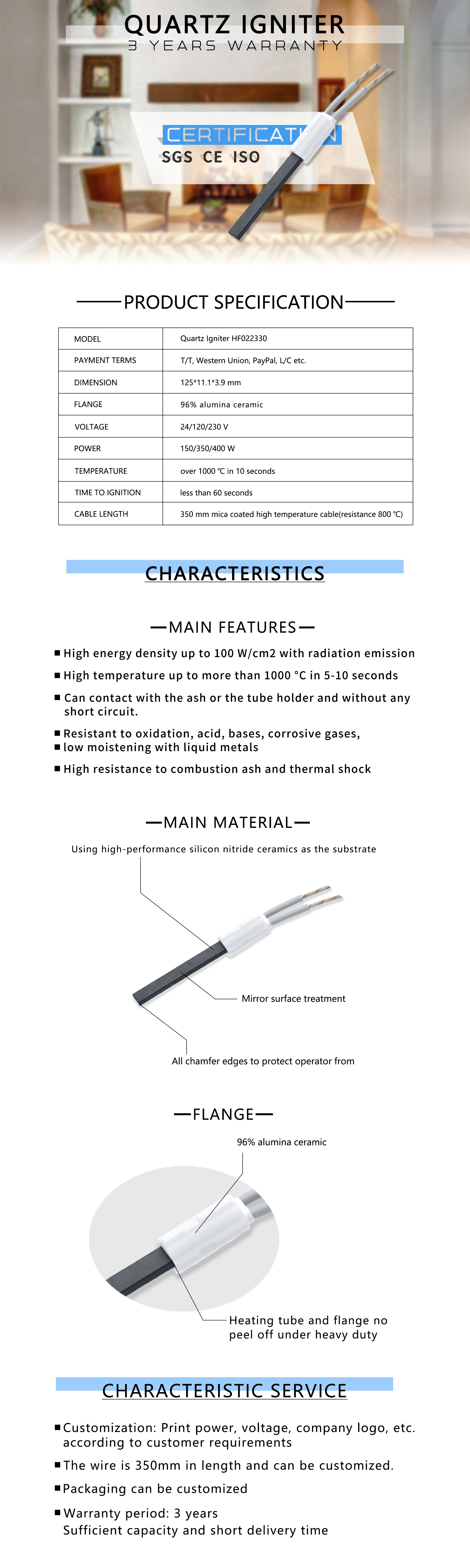 230в 300вт кварцевый поджигатель из нитрида кремния для биомассовых пеллетных печей