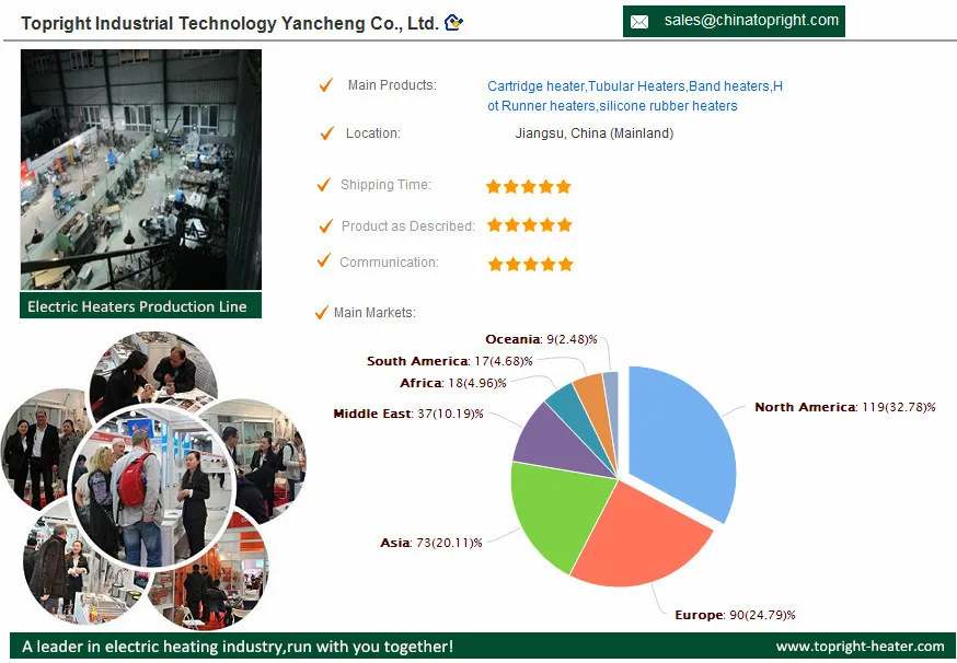 занимается разработкой, дизайном, производством и продажей в рамках одной компании по промышленным технологиям, в соответствии с потребностями клиентов предоставляет индивидуальные решения по дизайну, стремится к развитию в области электронагрева и измерения температуры. Продукты Topright экспортируются в Европу, Америку, Азию, Ближний Восток и другие более 200 стран. Пожалуйста, перейдите по ссылке: www.topright - heater.com