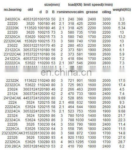 Примечание: Это только небольшая часть номеров моделей сферических роликовых подшипников, которые у нас есть. Если вы не найдете нужный вам, пожалуйста, свяжитесь с нами напрямую. Спасибо заранее.