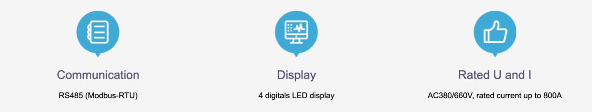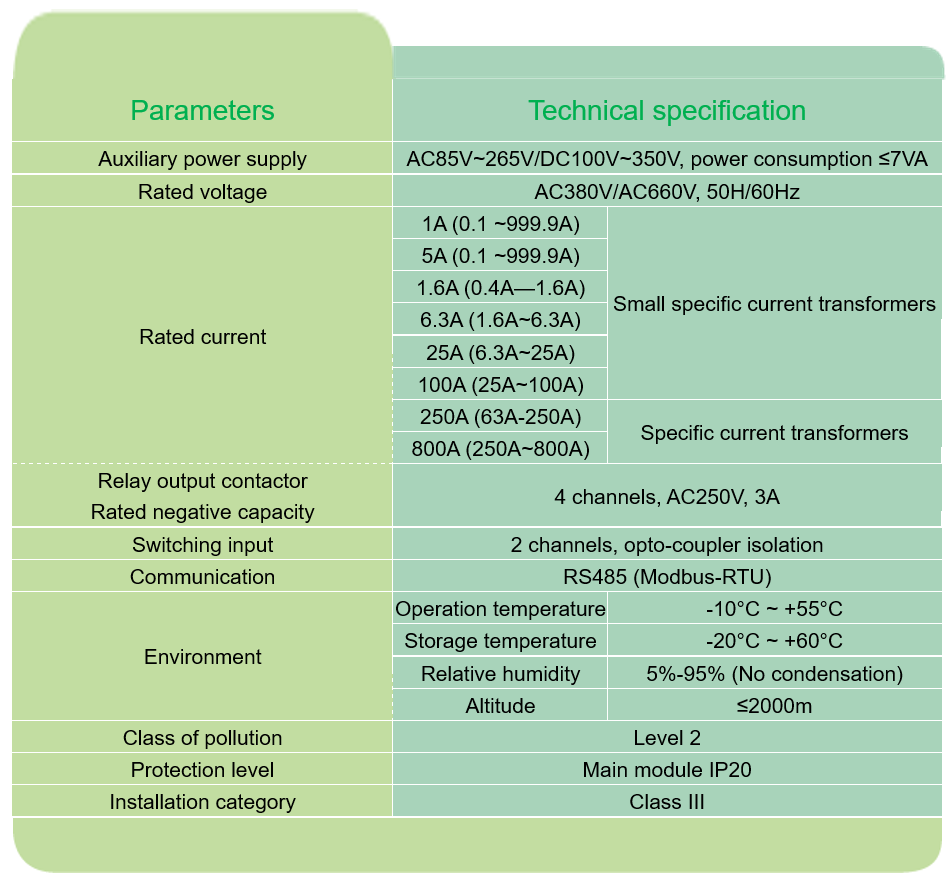 ● Возможен выбор протекции от утечки тока, RS485 связи, аналогового вывода и т. д.