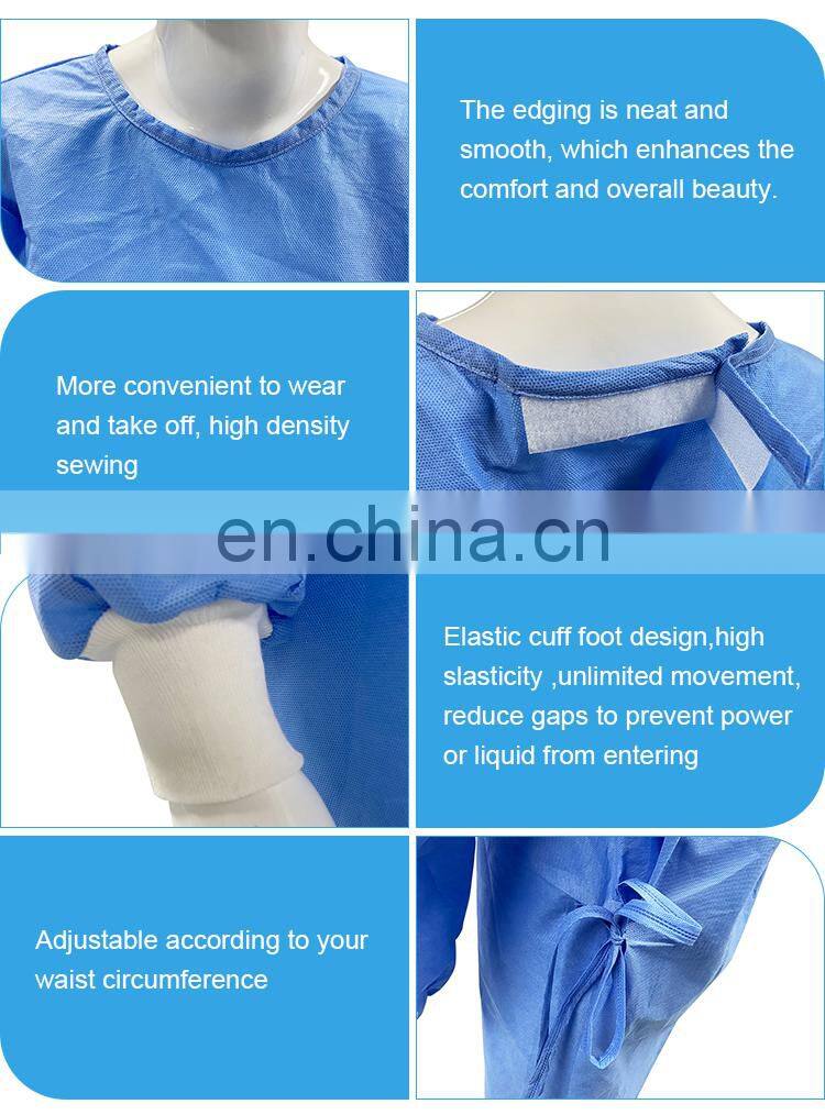 аами хирургическая антистатическая одноразовая синяя полностелесная изоляционная халат уровня 2 из нетканого SMS материала с эластичными манжетами