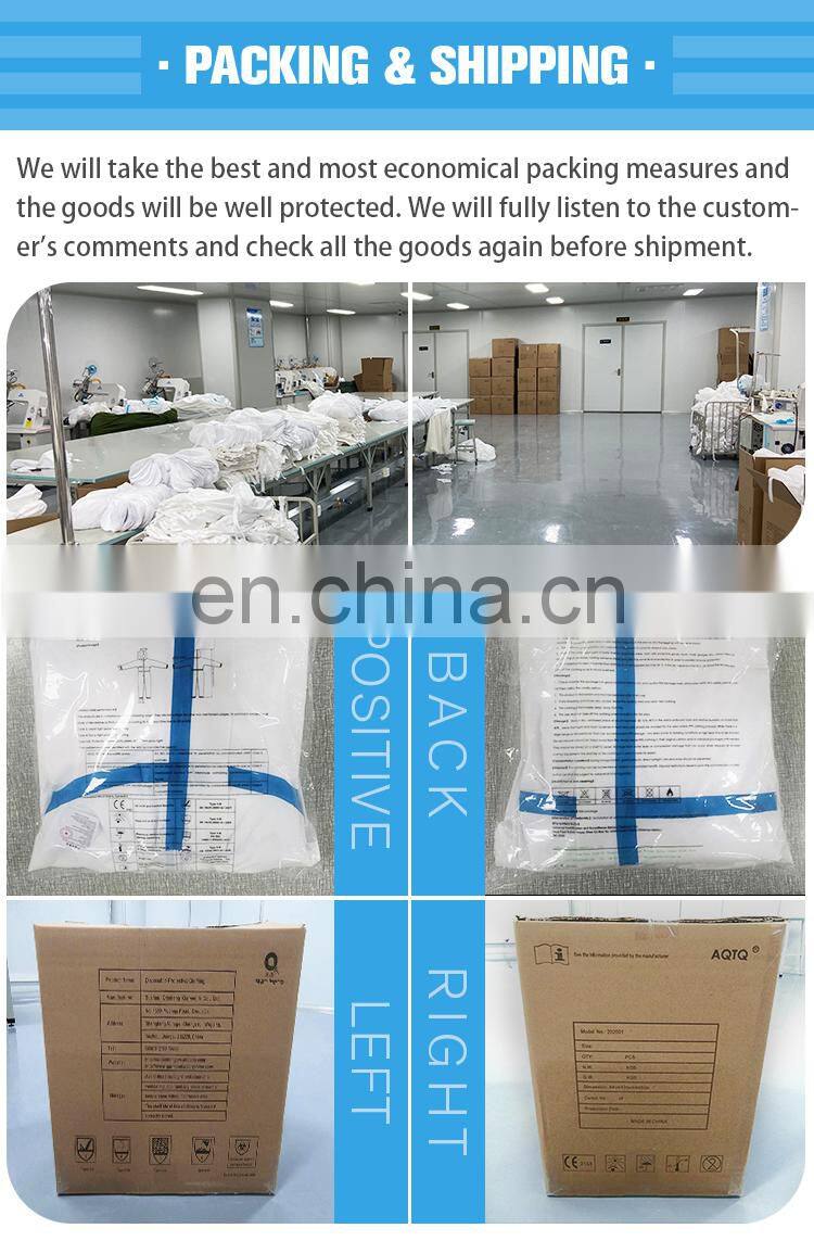Одеть одноразовую медицинскую защитную одежду из синей пластиковой пленки CPE для изоляции, длинные рукава, класс I, срок годности 2 года, индивидуальное изготовление AQTQ