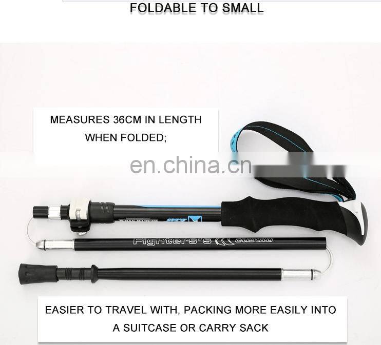 Популярный в продаже трехсекционный телескопический туристический палка с резиновой рукояткой для прогулок на открытом воздухе, альпеншток из алюминиевого сплава