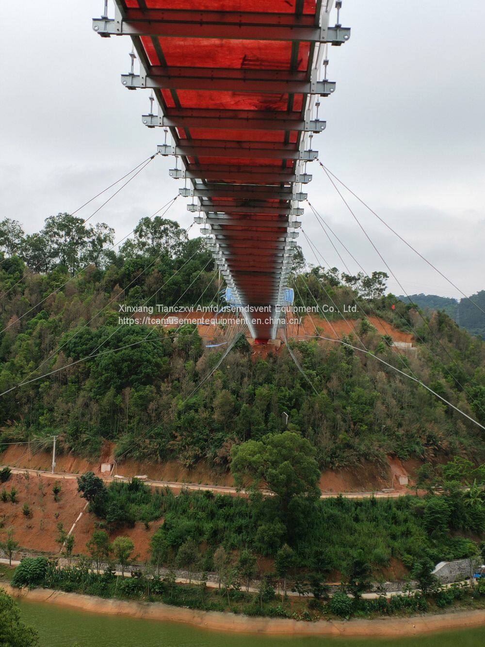 Проект стеклянного воздушного моста похож на ?небоход? в коридоре Гранд-Каньона в США, также известный как ?воздушный коридор?. Он имеет бетонный каркасный конструкцию, а двуслойное ламинированное закаленное стекло сочетается с нержавеющей стальной каркасной рамой, закрепленной в воздушной джунгли, на утесах, скалах и т.д. Красивые пейзажи и крутые рельефные формы позволяют туристам насладиться прекрасным впечатлением, одновременно обеспечивая безопасность жизни.