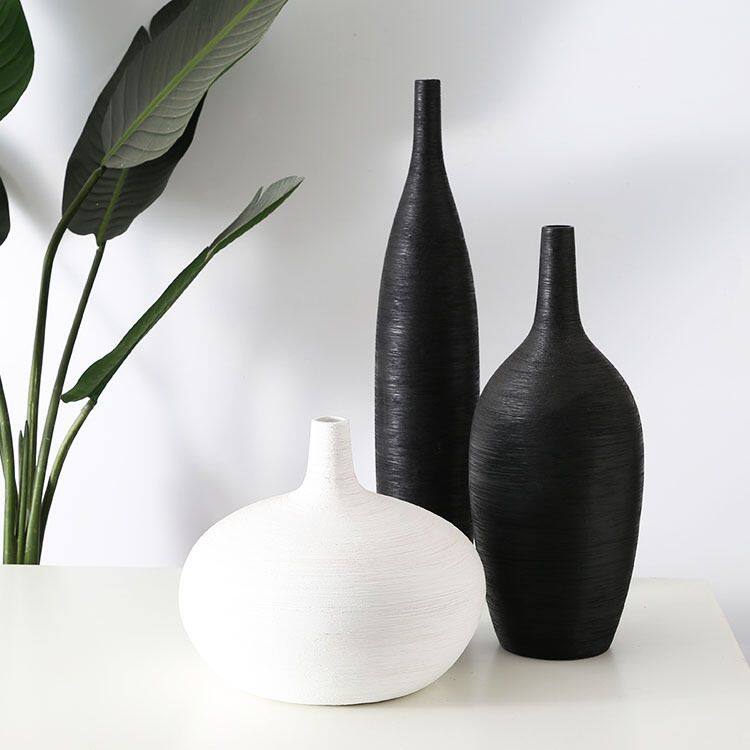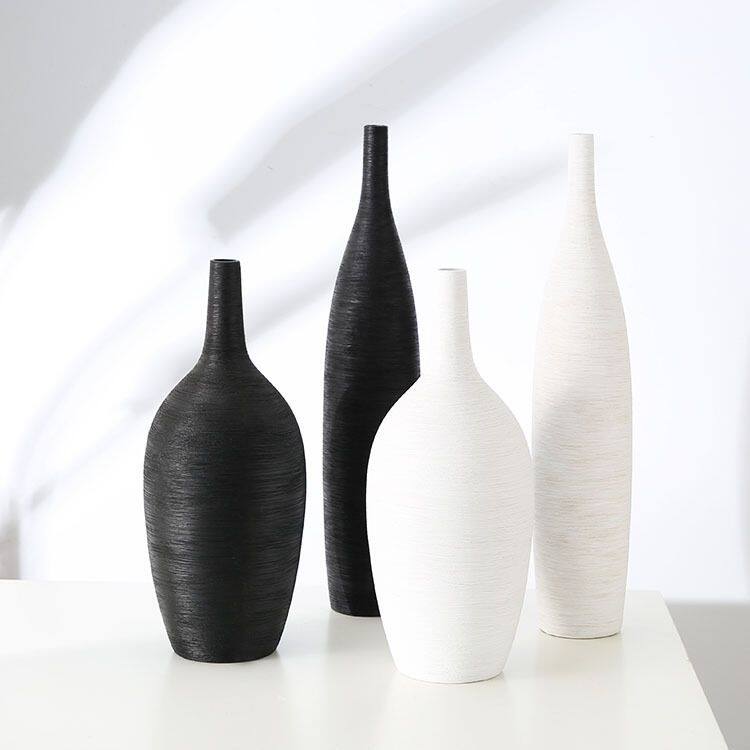 Персонализированная высокая и узкая большая белая или черная керамическая ваза с небольшим горлом для тумбы для телевизора в гостиной
