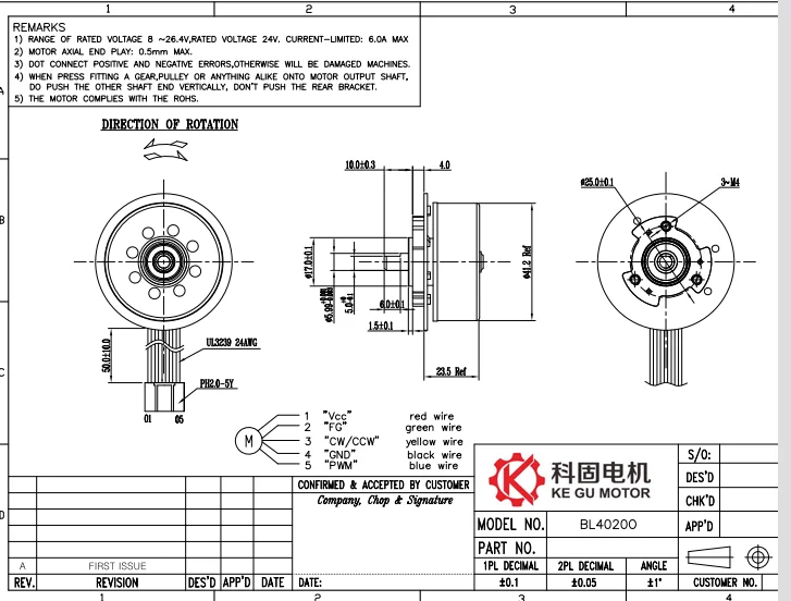 Чертёж бесщеточного ДЦ-мотора BL4020 40 мм