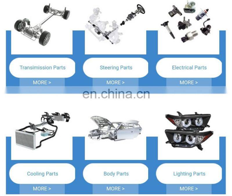 Мы занимаемся деталями шасси, деталями двигателя, электрическими деталями, деталями кузова, такими как тормозные колодки, амортизаторы, корпус сцепления и диск, лопастной насос, шкив распределительного вала, ремень, натяжной шкив, свечка зажигания, топливный форсунка, автомобильный датчик, переключатель электростеклоподъемника, фары, воздушный фильтр и так далее.