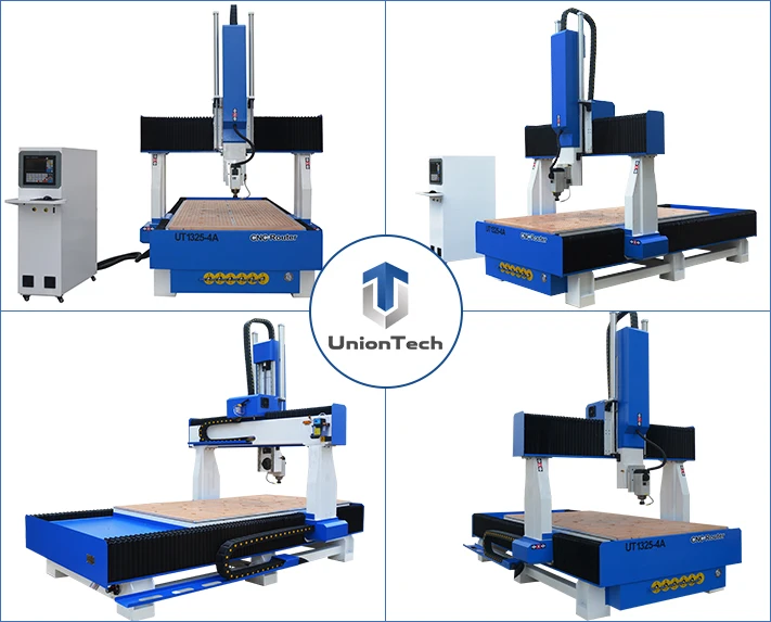 UnionTech 4-осевой ЧПФрезерный станок 1325 для деревянной резьбы с вращающимся осью