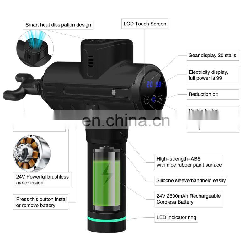 Новинки 2021 года: портативный массажер глубоких тканей тела, беспроводной вибрационный массажный пистолет для мышц с LED сенсорным экраном