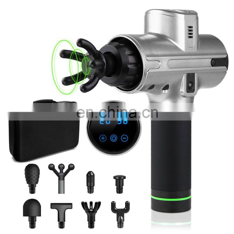 LCD сенсорный экран, 20 скоростей регулировки, 8-шести головка, бесщеточный двигатель, вращающийся новый стенд, жёсткий спортивный массажный пистолет Amazon для спортсменов