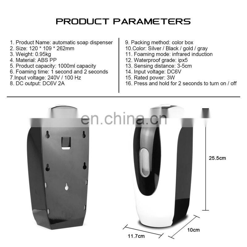 Автоматический диспенсер для мыла 1000 мл Безконтактный индукционный распылитель пены, капель жидкости, геля для мытья рук Настенный или подвижный вариант установки