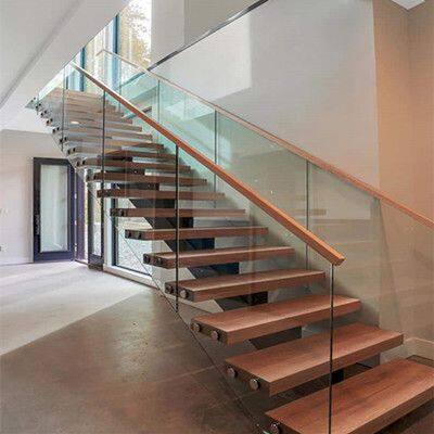 Индивидуальное изготовление поручней для внутренних лестниц из закругленной безопасной закаленной круглой стеклянной панели и деревянных ступеней