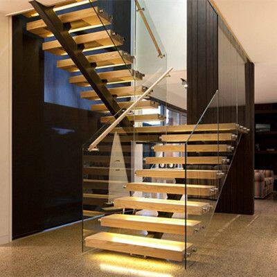 Прямая современная плавующая лестница из мягкой стали и стекла / Предфабричная стальная стеклянная внутренняя лестница