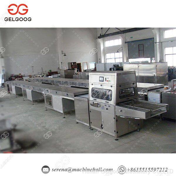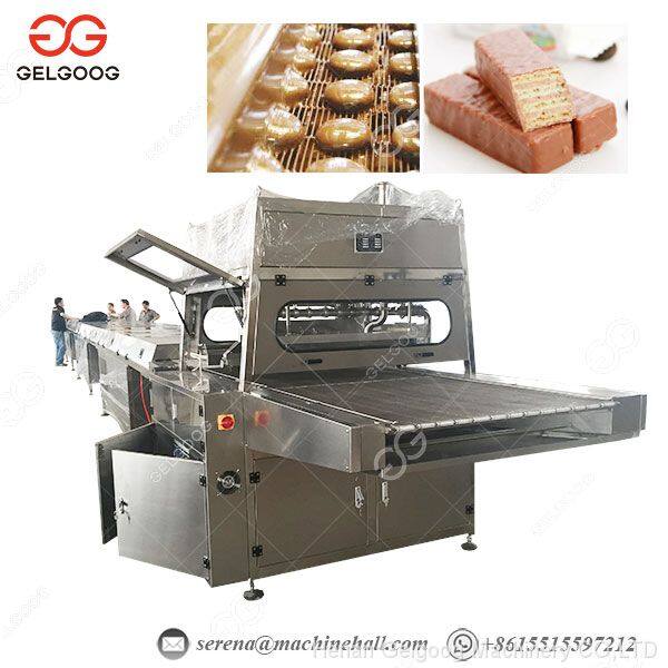 Это специальная машина для обволакивания шоколадом с охлаждающим туннелем, которая используется для производства разнообразных шоколадных изделий. Она может наносить шоколадную пасту на поверхность многих видов продуктов, таких как конфеты, вафли, пирожные и бисквиты и т. д.